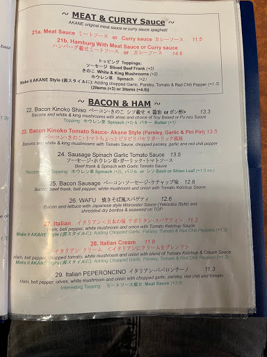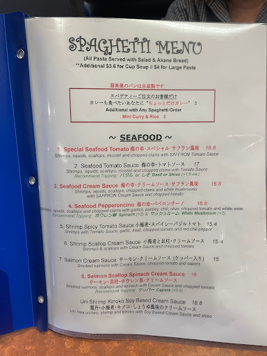 2023-02-13 21:45:23Today I tried Akane Chaya Salmon Scallop Spinach Cream Spaghetti Pasta which is really good and I like it a lot!! This is a good place for either Pasta, Curry, Rice Pilaf, or there Speciality which has a lot or variety. So the Menu that has Red Words means it is there Popular Meal!! So I recommend going to this place for a Japanese Pasta and other food variety for lunch or dinner!!