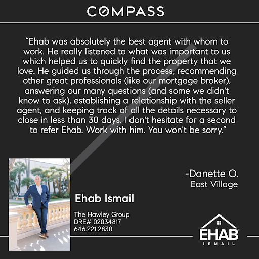 2023-12-21 05:14:36I recently had the pleasure of working with Ehab Ismail from Compass in San Diego for a third time, and I cannot express how grateful I am for the outstanding service I received throughout the entire home-buying process.From our initial consultation to the successful closing, Ehab Ismail demonstrated an unparalleled level of professionalism, expertise, and dedication. His knowledge of the San Diego real estate market is truly impressive, and it was evident that he took the time to thoroughly understand my needs and preferences.Ehab Ismail was not only a skilled negotiator but also an excellent communicator. He kept me informed at every stage of the process, promptly responding to my questions and concerns. His transparency and honesty created a sense of trust, which made the entire experience stress-free.One of the standout qualities of Ehab is his attention to detail. He meticulously guided me through each step, ensuring that no aspect was overlooked. His insights into property values, neighborhood dynamics, and future market trends were invaluable and greatly contributed to my confidence in making informed decisions.Furthermore, Ehab demonstrated exceptional patience and flexibility, accommodating my schedule and preferences. This level of personalized service made me feel like a priority, and I truly appreciated the effort he put into tailoring his approach to meet our specific needs.In addition to their professional acumen, Ehab also exhibited a genuine passion for helping clients find their dream homes. His enthusiasm was infectious, making the entire process not only efficient but also enjoyable.I wholeheartedly recommend Ehab Ismail to anyone in search of a dedicated, knowledgeable, and personable real estate agent in San Diego. My experience was nothing short of exceptional, and I am now happily settled into my new home, thanks to Ehab and the team at Compass. If youre looking for a positive and stress-free real estate journey, look no further—Ehab Ismail is the one you can trust!Thank you once again for your outstanding service!