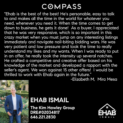 18 Reviews for Ehab Sells San Diego, Realtor, COMPASS DRE02034817 2024:
