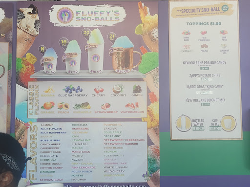 2024-07-01 04:49:14An experience to remember! If youre from New Orleans and missing home or if youve never been to New Orleans and want to go-stop by Fluffys sno-balls for a sweet treat! They have beignets, pralines, chee-wheez, and an extensive variety of sno-ball flavors including dill pickle. Now, if youre like me youre probably thinking that wont taste good🥴. To my surprise they pulled it off! They offer multiple flavors at no additional cost...heck, theyve even named some flavors after some customer favorites. You walk in as a customer and leave as family!