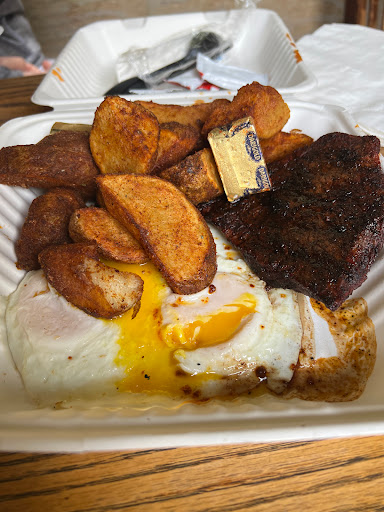 2024-05-03 22:49:13This place is heavy on the atmosphere. It does the old Western theme without being cheesy, while serving some delicious meals. The bacon is unlike anything I’ve had! When you order the Cesar salad to go, make sure you order the bacon and chicken to go with it. It comes deconstructed so you can build it yourself and the croutons are massive. Love this place!