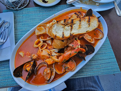 2024-06-14 18:19:38We went to this restaurant for dinner based on the recommendation from Portofino hotel’s concierge. I had asked for a casual but good Italian restaurant. It was a nice half a mile walk along the coast which was pleasant. Once arrived we were greeted by two nice Italian guys who told us that the inside was all reserved so we only could seat in the balcony. The outside seating is heated by overhead heaters but when the wind was blowing from the sea it got chilly. We told the server that we were celebrating my son’s birthday but at the end we didn’t get any dessert or a happy birthday song. I got an aperol spritz ($14) but definitely was not up to my standards. My wife got the ginger pear martini ($18) which although a bit small it was very tasty with a nice ginger kick. We also had a couple of beers for the boys. Ordered the calamari appetizer ($18) which was very nice and came with two dips. We were served three baskets of bread as we waited for our main course which was very nice. I ordered the ravioli bolognese and unfortunately was kinda disappointed as the I expected a hearty meat sauce but it wasn’t. My wife ordered cioppino which was an off menu special ($42). Although there was a nice amount of seafood, the sauce was very thick and tasted meh. My kids got the chicken and cream pasta which was the best item that we ordered. Nice taste with sundried tomatoes and capers in a creamy sauce. Unfortunately no one stopped by to offer extra Parmesan cheese. I rate the location 4.5, the service 4, but the food below my expectations.