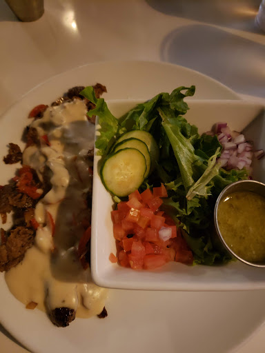 2023-02-27 07:25:49Delicious food and a cool environment, but I can’t give that fifth star.I went with a party of people for a reservation that was placed a week prior. We weren’t seated until nearly 45 minutes after the reservation time.The waiting area is small, but made smaller when musicians are trying to set up and it was tight.But the food was amazing! Everyone shared their orders and we had a great time after we were seated.My husband ordered a popular burger but swallowed it up before I could take a pic. I got the beef stroganoff, which had a creamy, spiced sauce and perfectly tender beef.The appetizers we got, poutine and the bruschetta, were amazing!But the drink I ordered was missing the emulsified basil and the dehydrated strawberry garnish. When I asked the waitress if I had the right drink, she said it was correct, just missing the garnish. I explained it was missing more than just the garnish and she fed me an excuse about the drink being premade so “it just comes like that.”I didn’t want to make a fuss so I let it go but there wasn’t even an offer to have it remade correctly.As dumb as I felt that encounter was, the rest of the meal was so delicious I will 100% return for some good food. But maybe I’ll stick to beer or wine next time.