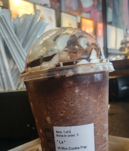 2023-08-02 23:27:54Went here mainly to cool off in the ac. Ordered a frozen lemonade which was excellent. Best thing about this place is it didnt smell like coffee! Im not a coffee drinker and just the smell of it makes me vomit. This Starbucks had no coffee smell at all. It was great. Kinda weird as it as a coffee shop but good for me!