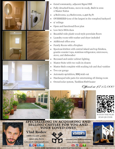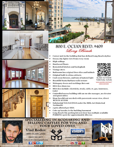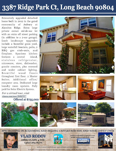 2016-08-18 02:07:26I first met Vlad after deciding to sell my home in Long Beach. I asked three different realtors to submit a marketing proposal for selling my home. Vlads proposal was significantly better and the interview process proved him to be a very charming, patient and knowledgeable real estate agent. I was sold.Vlad is great to work with and aggressively marketed my home with online videos, open houses, door to door, upscale flyers and sign placement. The house sold quickly and Vlad did a background check on the buyers and then monitored the process carefully and generally held my hand through it.A few months later I asked Vlad to sell a rental property for me. It was in the same market but needed some repairs inside and out. Vlad gave me referrals for people to do the repairs and that worked out beautifully. Once again Vlad found a buyer and I received a record price per square foot for the house.Finally, I was looking to downsize and Vlad scoured Long Beach and we looked at numerous homes that fit the objectives but I ended up moving to Palm Springs.I highly recommend Vlad whether you are buying or selling or considering. He will make you very happy.